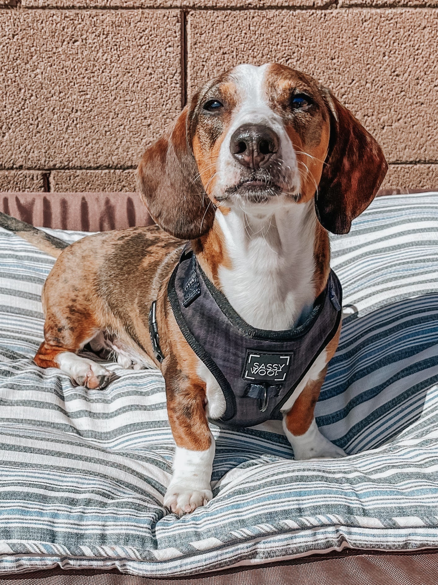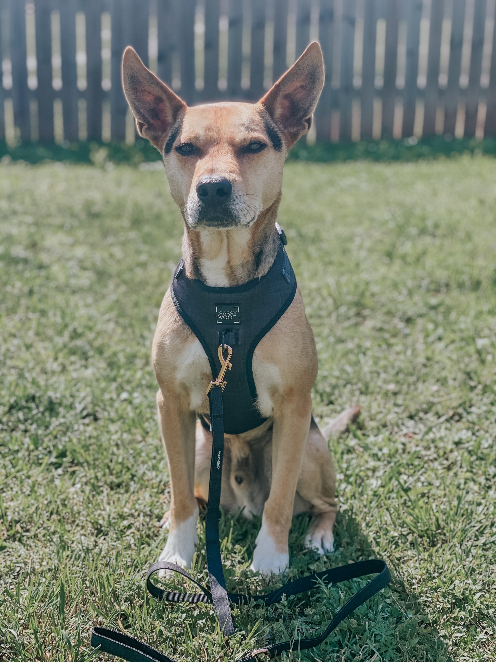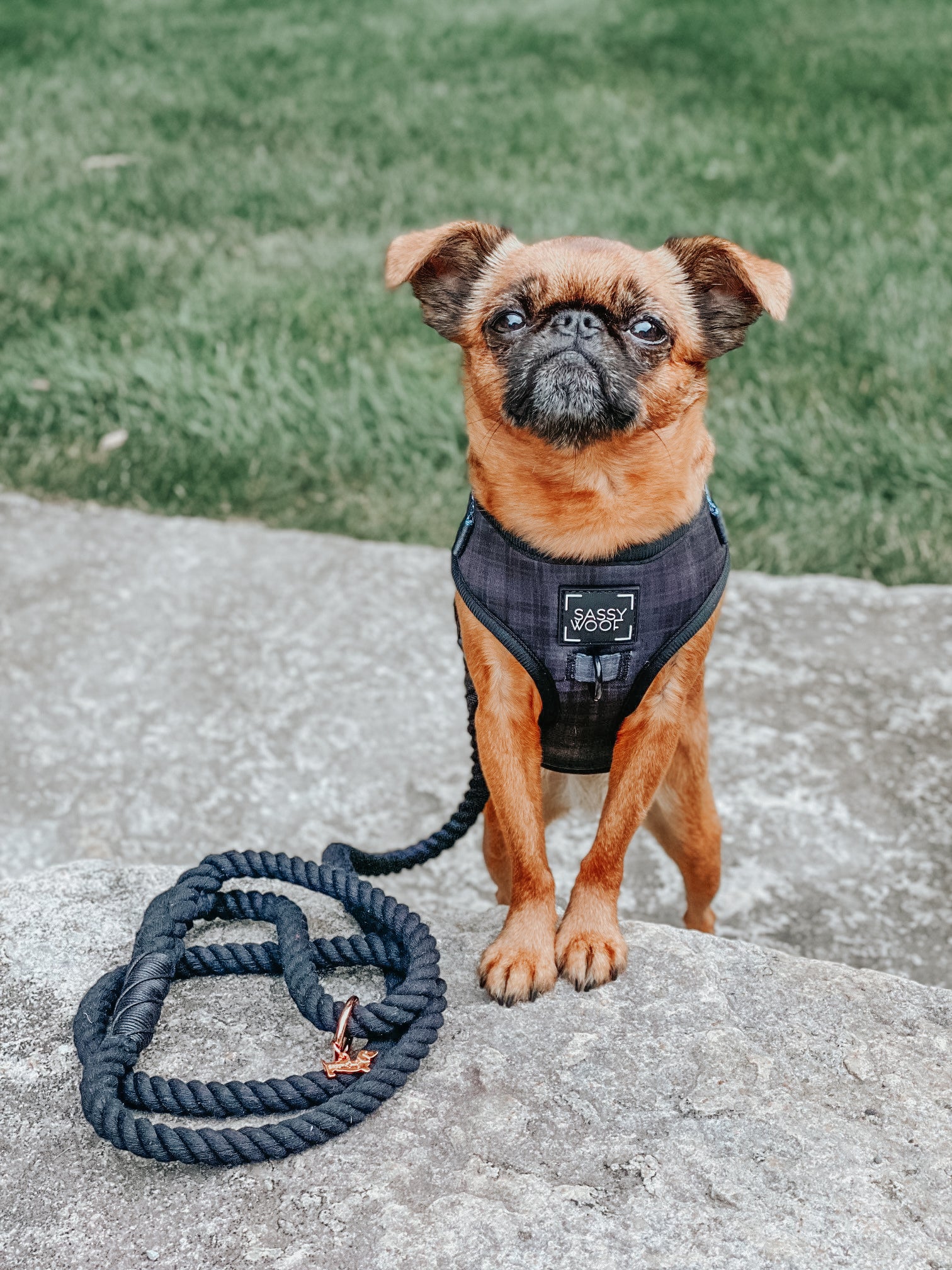 Pair this harness with our matching collar, leash, and waste bag holder for the complete look!