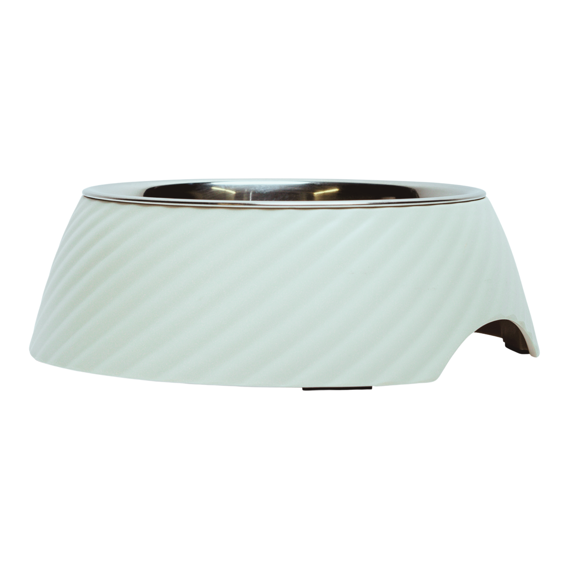 Twill Round Melamine Stainless Steel Dog Bowl - White Swan